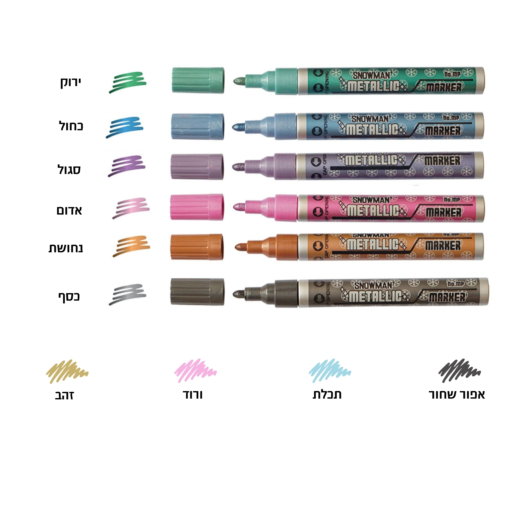 הטוש קיים בגוונים: ירוק, תכלת, סגול, ורוד, נחושת, כסף, זהב, אדום, כחול ושחור.