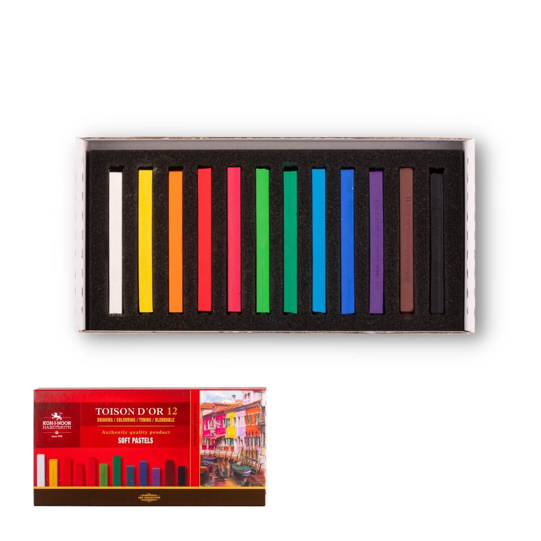 סט פסטלים יבשים אבקתיים ומרובעים בעלי תכונות כתיבה מעולות ויציבות אור טובה.